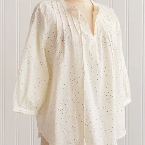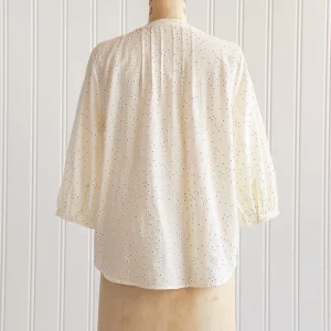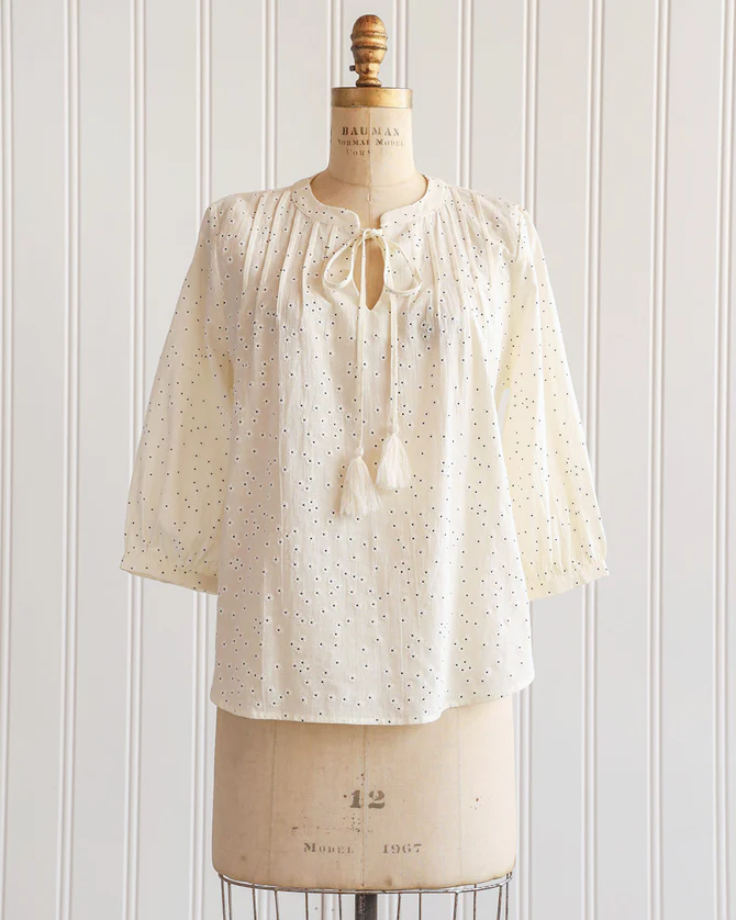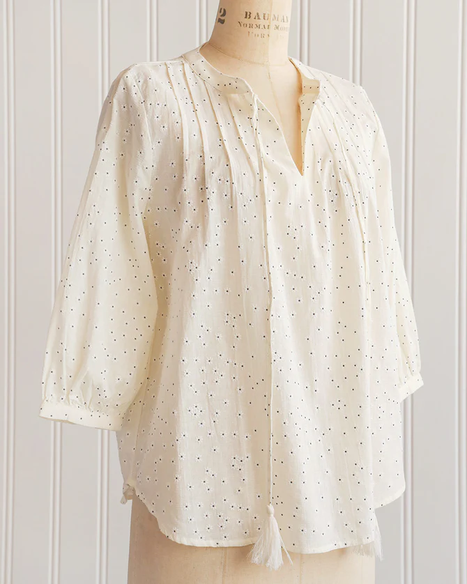 Romantic timeless vintage inspired cream printed pintuck blouse