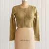 Feminine vintage inspired fitted off white button down knit top with soft and subtle ribbing. This lightweight knit cardigan top can be worn as a layering piece or on it’s own. Material is semi sheer so a skin toned undergarment will need to be worn if wearing on it’s own as a top.